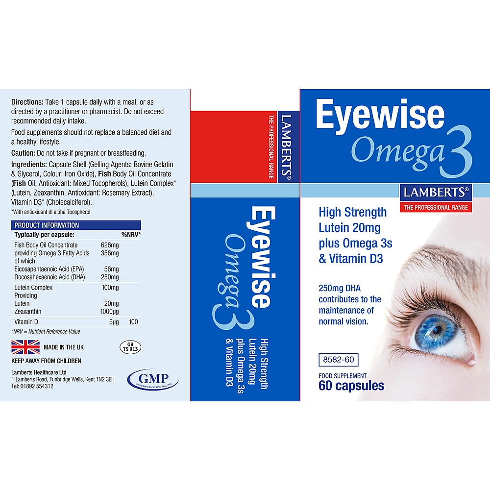 Lamberts® Eyewise® Omega 3 is a premium, high-strength supplement designed to support clear, healthy vision — all in a convenient one-a-day capsule.